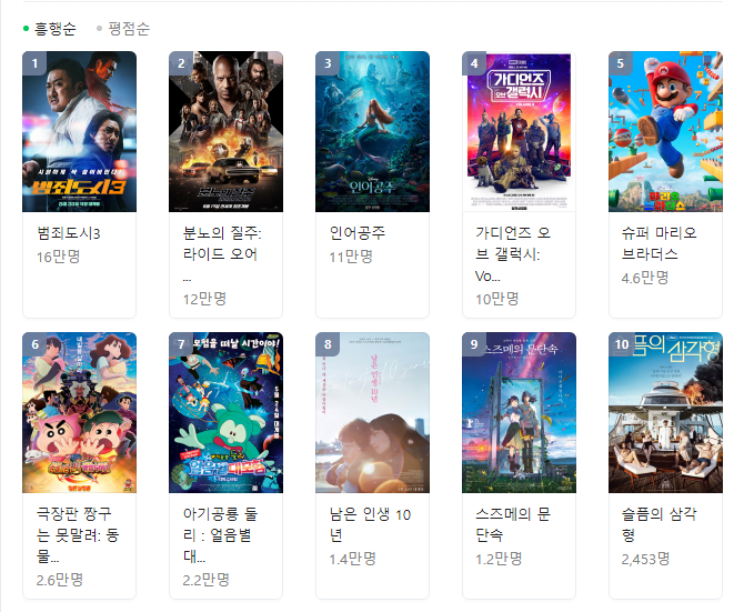 1위 범죄도시3 2023.05.31 8.04 ★★★★